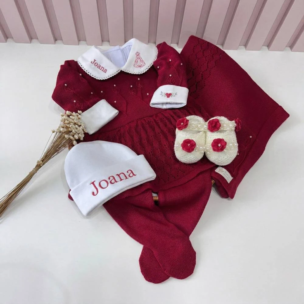 Kit completo e delicado, ideal para a saída da maternidade e primeiros momentos do bebê. O conjunto é composto por vestido, legging, body personalizado e manta, unindo conforto, beleza e praticidade. Atenção: Touquinha, luva, sapatinhos e naninha não estão inclusos. São vendidos separadamente — consulte valores. Variações de cores: Vermelho, areia e rosa bebê Adicional opcional: • Bordar o nome na manta (valor à parte) |