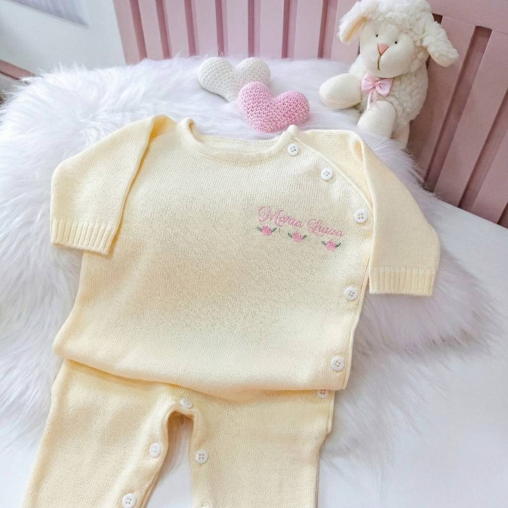 Conjunto composto por macacão e body (2 peças), ideal para proporcionar conforto e praticidade no dia a dia do bebê, sem abrir mão do estilo. Atenção: Touquinha, luva, sapatinhos e naninha não estão inclusos. São vendidos separadamente — consulte valores. Variações de cores: Vermelho, areia, rosa bebê, verde mescla, verde eucalipto, preto e azul jeans Adicional opcional: • Bordado na gola do body (valor à parte) |