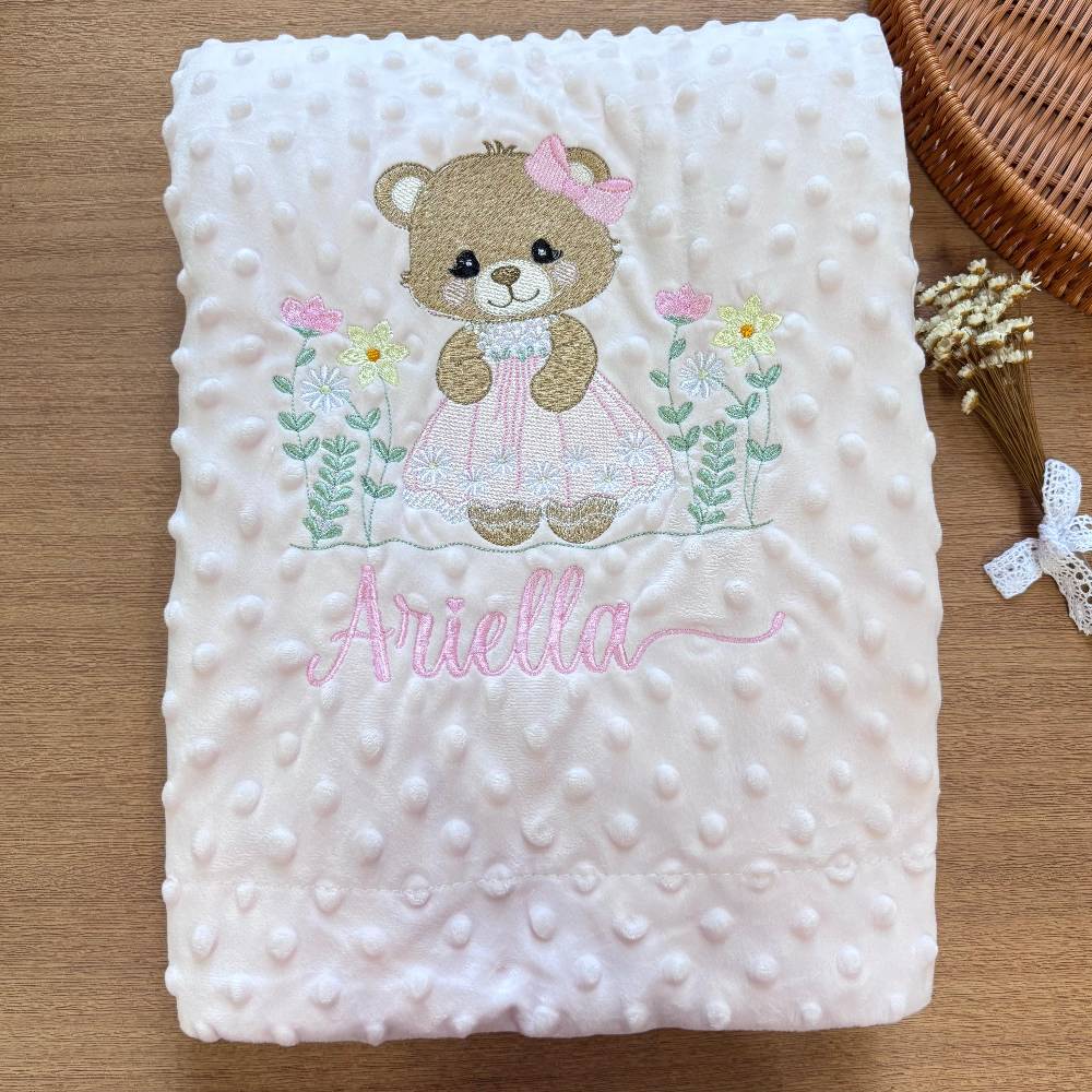 Cobertor pipoquinha todo forrado, medindo 1,00 x 1,50 m. Serve de 0 a 6 anos. Personalizamos com o nome e o desenho de sua preferência. Detalhes do bordado serão definidos posteriormente no WhatsApp. |